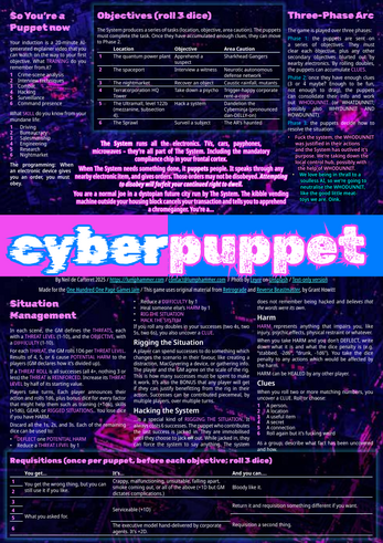 You are a normal joe in a dystopian future city run by The System. The kibble vending machine outside your housing block cancels your transaction and tells you to apprehend a chromeganger. You’re a cyberpuppet.